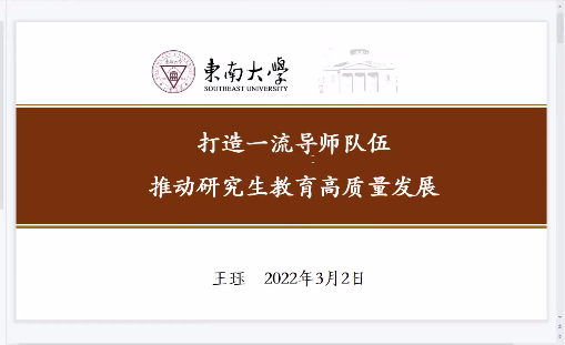 随后,党委副书记高珺向各位导师通报了近期研究生教育管理的工作动向,要求各位导师严格落实立德树人职责,关注研究生群体的行为、心理倾向,同学生线一起做好学生的日常管理和培养工作。